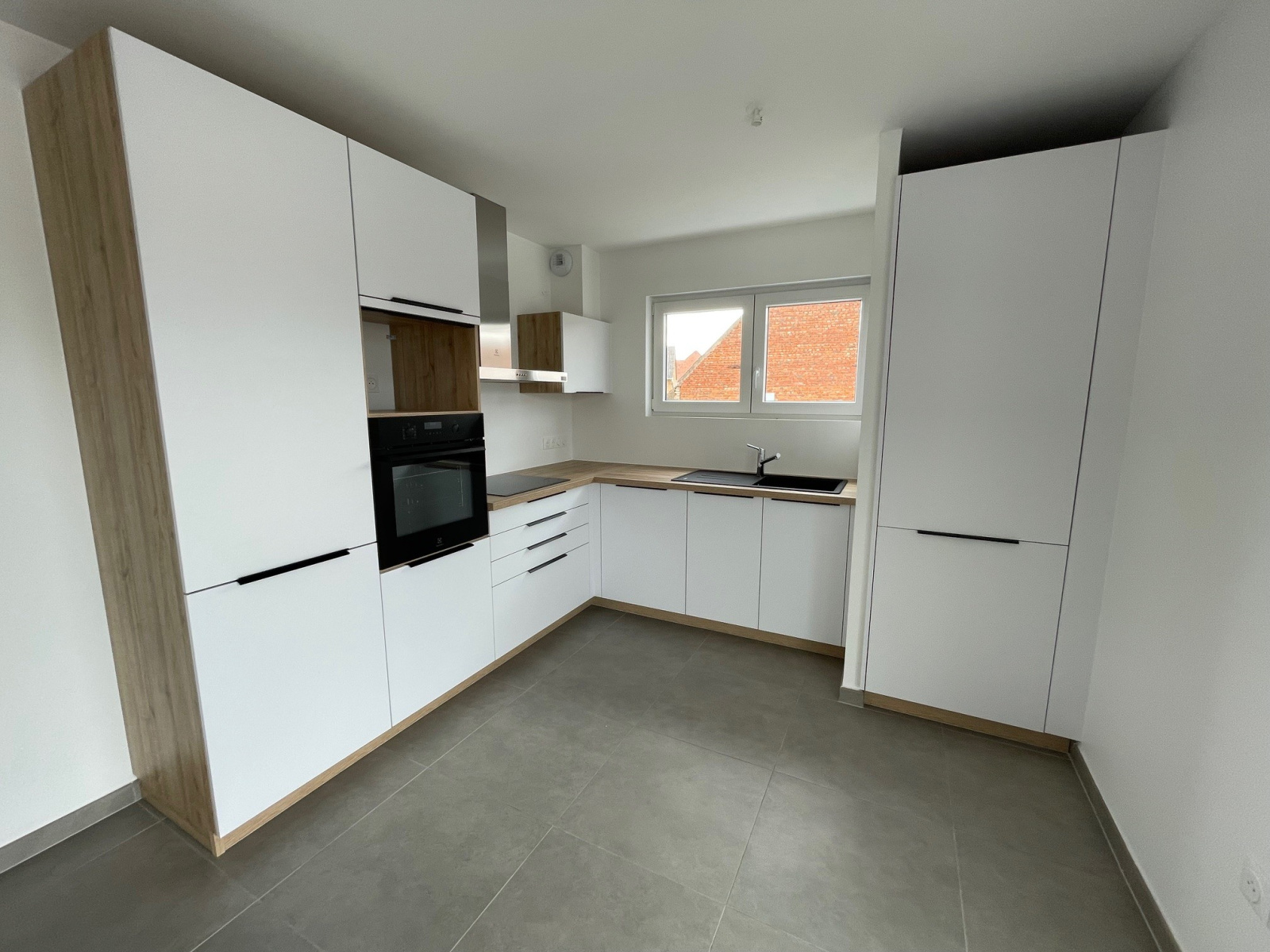 Contenance : entrée/dégagement avec placard/vestiaire, pièce à vivre de 26 m² avec cuisine ouverte neuve meublée et équipée (cuisson, hotte, four, réfrigérateur et LV, 2 chambres à coucher, salle d'eau, WC séparé.