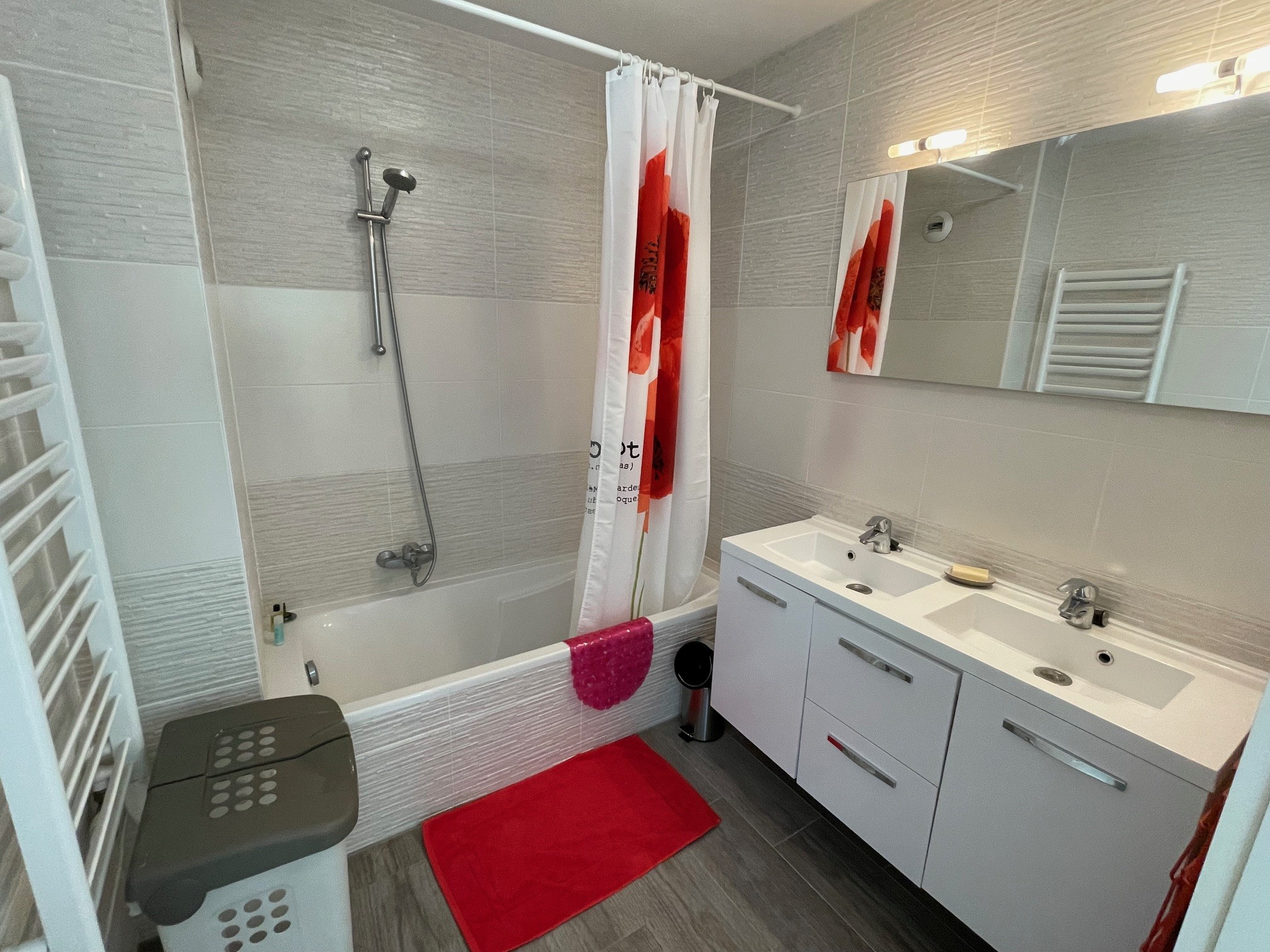 Contenance : dégagement entrée, pièce à vivre exposée plein SUD avec accès terrasse de 20 m², cuisine meublée et parfaitement équipée (cuisson vitro, hotte, four, LV, réfrigérateur/congélateur), 2 chambres à coucher dont une avec grand placard/dressing sur mesure, salle de bain (baignoire), WC séparé (avec machine à laver).