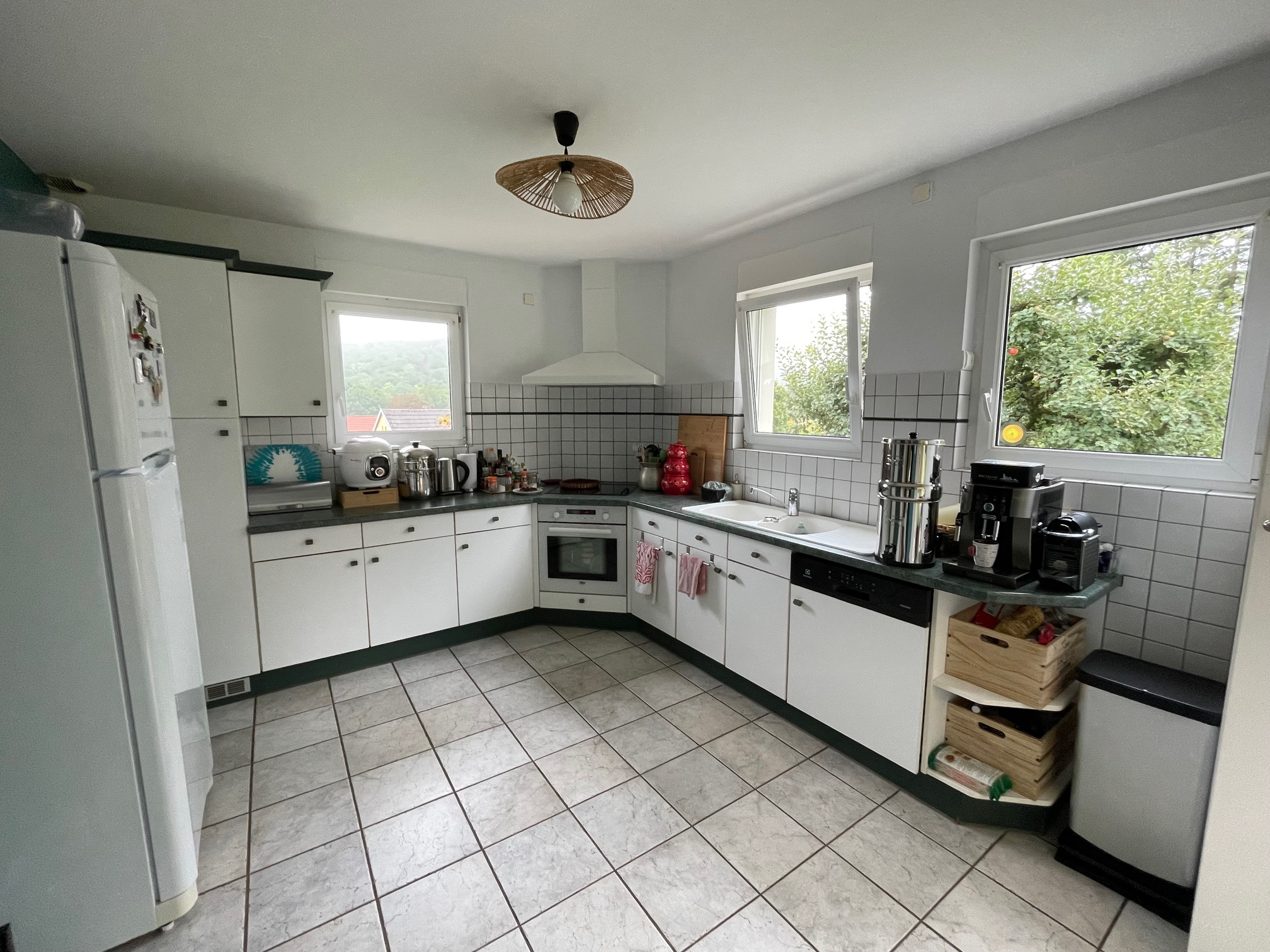 Le sous-sol complet comprend : une pièce aménagée (isolée, chauffée et fenêtre) pouvant servir de bureau ou chambre d'appoint, grande pièce/cave/buanderie avec la chaudière. Garage 2 voitures de plain pied avec porte motorisée.