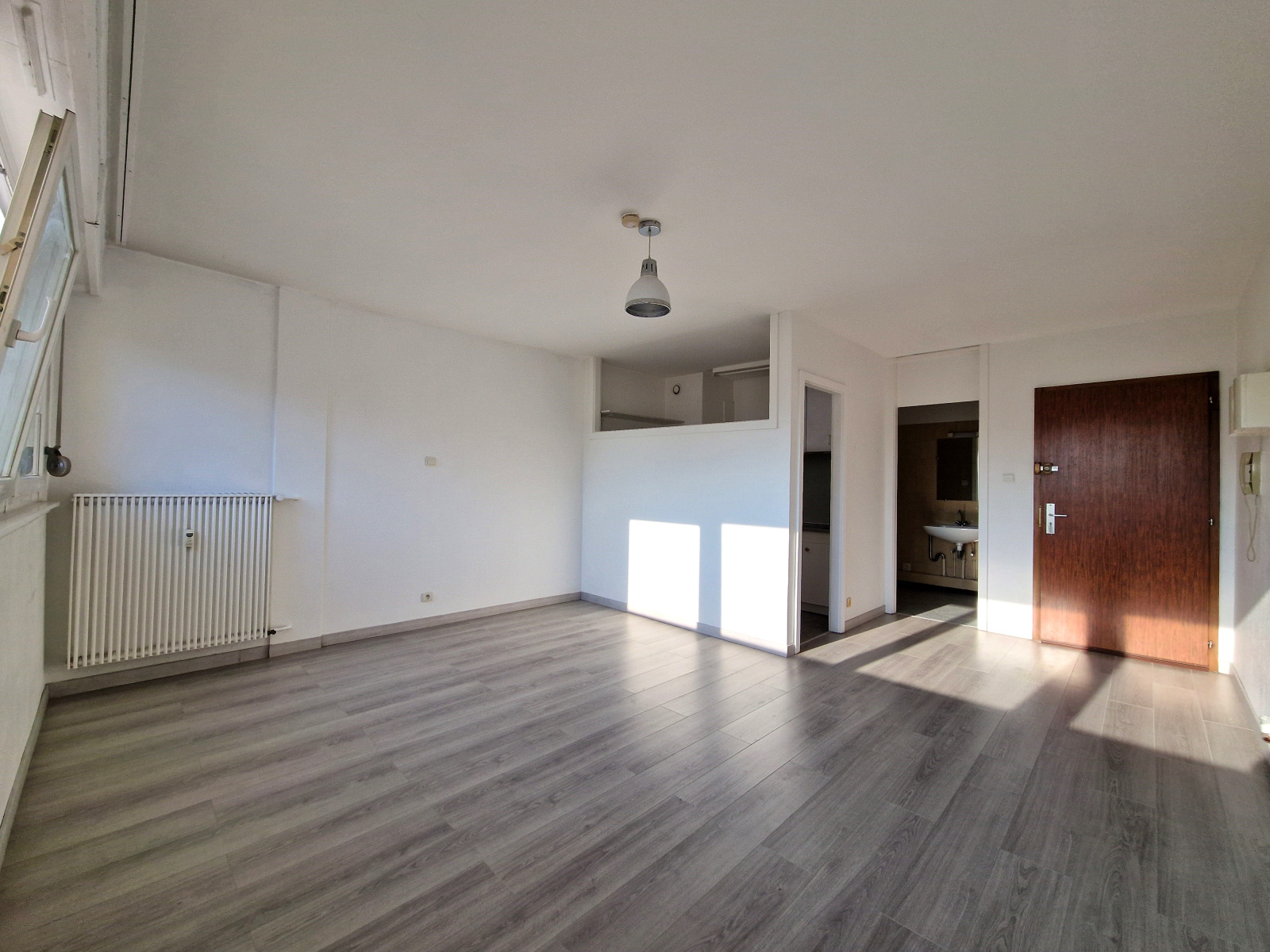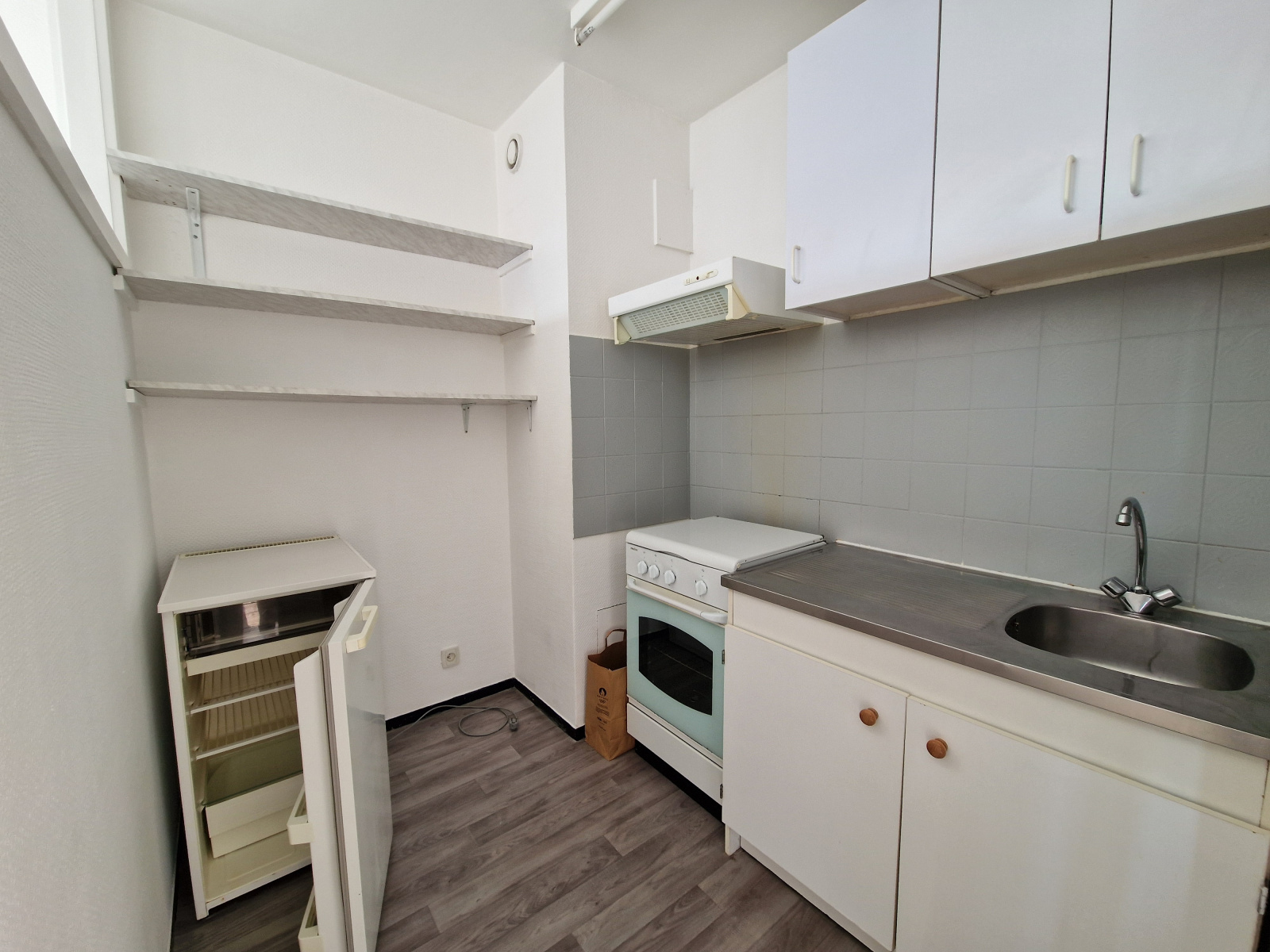 Descriptif : entrée, pièce principale, cuisine semi-ouverte avec électroménager : gazinière, réfrigérateur), salle de bain / wc.