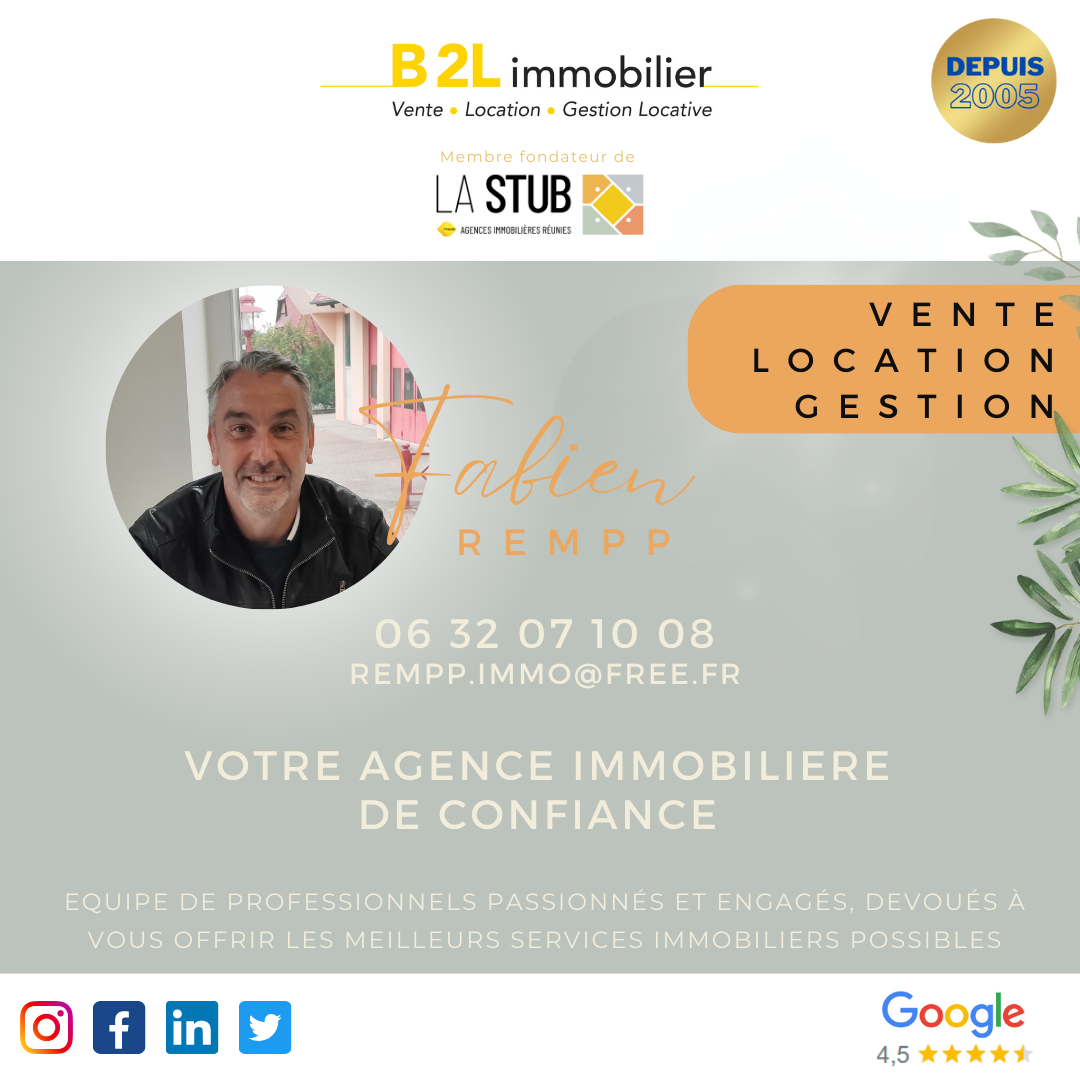 Pour davantage de renseignements, n'hésitez pas à contacter Fabien REMPP, mandataire indépendant de l'agence B2L au 06.32.07.10.08. R.S.A.C SAVERNE TI 503 256 174.