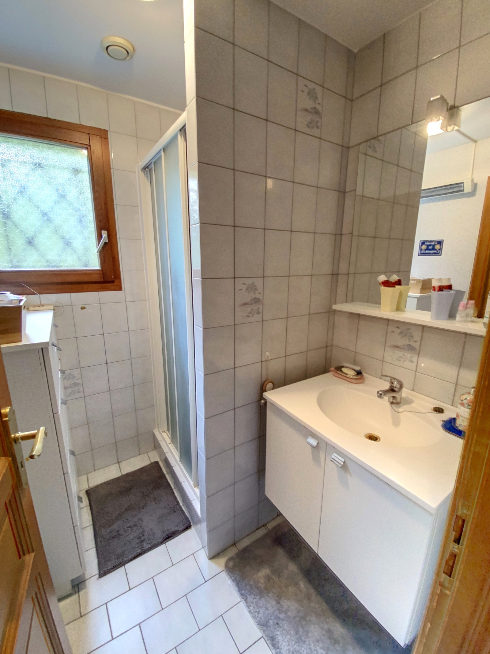 Le sous-sol comprend un garage, une chaufferie et une buanderie fonctionnelle. Le chauffage du rez de chaussée est au sol.