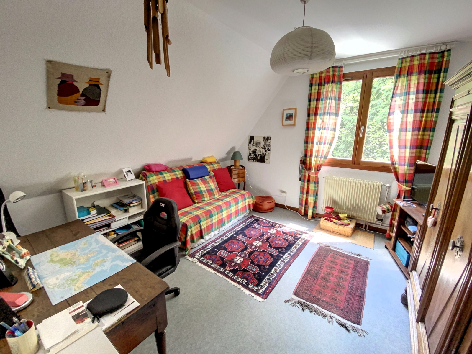 En lisière de forêt et en impasse, au calme, maison de 148 m² habitables sur une parcelle de 604 m². Dans un cadre verdoyant et bucolique, à l'abri des regards, cette grande maison pourra accueillir une famille nombreuse avec ses 6 chambres à coucher réparties sur deux niveaux.